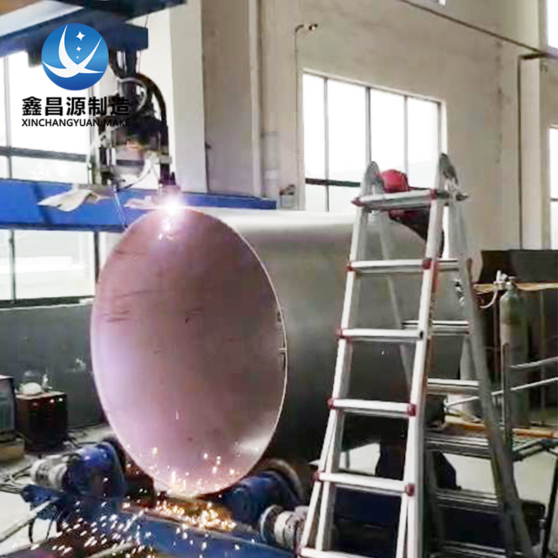 3、自動焊機:雙槍頭,一把等離子(美國飛馬特),一把氬弧焊(日本鬆下),焊接厚度3-20mm,長度12.5米,高度4.8米,一槍焊透,探傷合格率90%。可以焊接圓筒、方管、平麵鋼板、椎體。